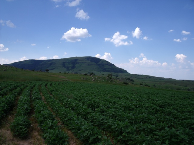 My landing spot, Soya bean plantation and Dumbe in the background |