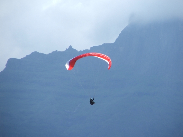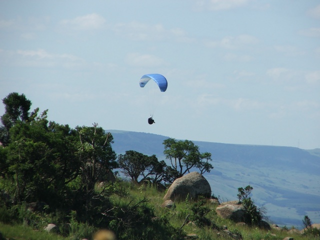 Saturday the weather was good, enabling Billie and Morne to climb to 580m ATO before leaving the mountain and to glide 5km before finding the next thermal bubble. This bubble didn't impress Billie as he only climbed 50m for the seven times that he circled in and out of such a small thermal, so he notified Morne that he was heading out for the next promising trigger point. He was mistaken as the trigger didn't work so he flew along the forest line sinking out lower and lower in search of something better, only to find a small consistent bubble at the end of the field which eventually turned into a thermal which took him up to 819m ATO, what a sight and feeling to be able to thermal up above to above the cloud base! Morne then joined Billie in glide and search for another thermal, only to land 15.1km from takeoff. Never the less, fantastic views, a low save and a flight to remember! Sunday the weather was similar enabling Morne to again leave Dumbe to complete a 31,5km flight in 2,5hours with maximum height of 917 ATO, while the rest of us bottomed landed. –Well done Morne, wish we all could have joined you! We rushed up the mountain to have a second chance, this time Billie managed to have a short scenic flight over PaulPietersburg while only getting to 250m ATO in the thermals over the flat lands and to complete a 6.5km flight. After all the cross country flights a fantastic valley release was enjoyed by all.