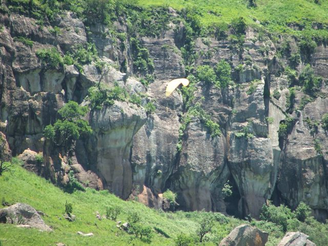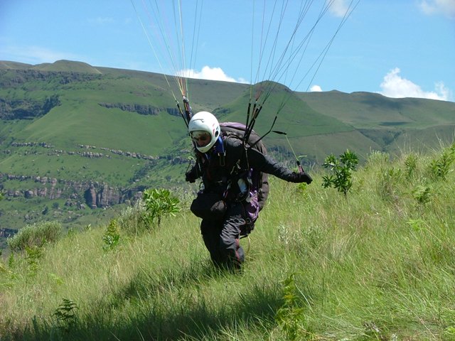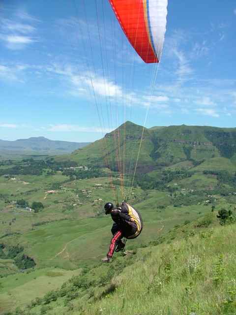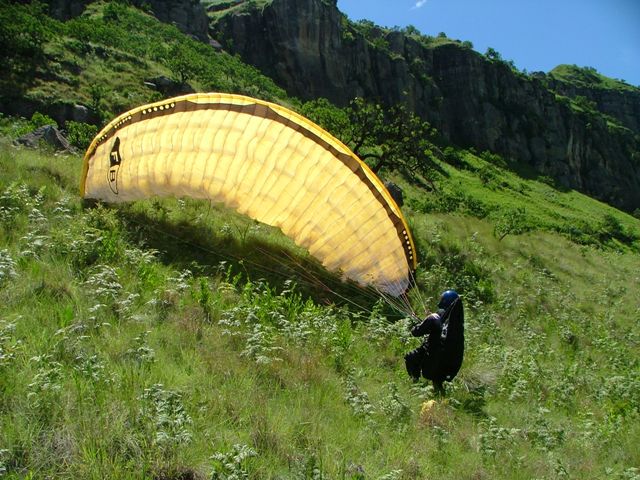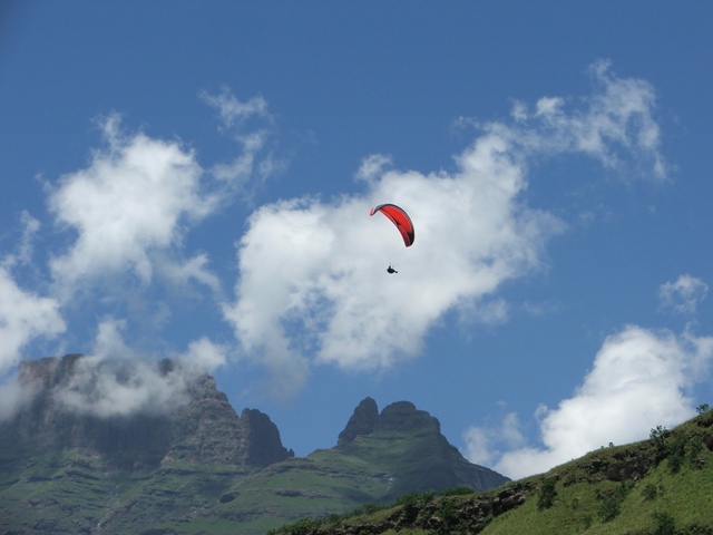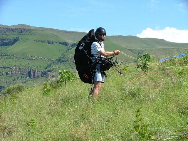 The Story! We managed to get a booking at Rod’s Cottage over the New Year although it was only for two nights, the 30th and 31st of December 2007. Rod’s Cottage is situated in the Little Berg, very remote and overlooking the majestic Champagne Castle. Being able to wake up early morning to such an overwhelming view of the sun colouring the mountains a bright red, must be experienced to understand true beauty… Marius, Alida and kids from Piet Retief, Jaco and Estelle from Paulpiet and George and Cordula from Vryheid met up early morning with Billie and Debbie at Ladysmith Wimpy. We were driving in procession to Rod’s Cottage passing wonderful sights of the Drakensberg just wanting to break through the low clouds. We all met up with Morne from Vryheid at Thokozisa and enjoyed a breakfast and some shopping before heading off to Rod’s. We turned off the main road into what looks like an unused path. Rod’s is only 6km in, but the “footpath” you have to travel takes about 50 minutes. No car would make it through here, especially when wet. Luckily it was dry and, after zig-zagging over the same river three times, steep uphills and the most magnificent sights, we arrived at Rod’s. Looking up at the take-off site right there on your doorstep, everyone quickly unpacked the cars and the men set off to the task of climbing up the 160m to take-off to experience the beautiful view to be seen from up there. It took some of them a good hours’ climb and then another half an hours’ rest before they had enough energy to unpack a glider to fly. This is no easy climb: very steep, grabbing on grass to haul yourself up, on your hands and knees a couple of times and concentrating on not rolling yourself and your glider downhill again… but every drop of sweat worth it! Your glider will only accompany you on the path up…there’s no way of carrying it down – it must be flown down of left up there for the next day if today turns out unflyable. Morne and Marius took off, got up to the second cliff face and flew for over two hours, taking in the breathtaking view. Take off is so low, only 160m, that you have very little room for mistakes. If you get below take off, your chances of getting up is very slim. While the men were flying, the kids were rowing, fishing and swimming in the little dam a few feet from the cottage. The women enjoyed themselves on the foofie slide and also doing some rowing and swimming. After the men returned from their flights, Billie suggested the “Waterfall walk”. George and Morne decided not to go in order to save their energy for the next days’ climb, so the rest set off for the 4.5km walk. The walk was very relaxing downhill with lots of stops to take in the view, taking photos and, for some, swimming in the ice cold water. Only Billie, little Marius and Jacques braved the water while the others just rested on the rocks in the sun. After visiting the waterfall, the steep walk back awaited. At least there was a decent path to follow and everyone got to the top exhausted, but satisfied about the sightseeing and the fresh air only nature can provide. Later that night, after the braai, all of us fell into our beds tired, but excited about what the next day would bring. Billie and Debbie slept on the veranda, George and Cordula inside in front of the fireplace, Morne was camping and the rest were sleeping upstairs on the bunk beds. Morning came and everyone decided to take on the mountain again. Debbie also managed to get safely to the top, with lots of help from little Marius and Alida. Billie carried Debbies’ glider through the hardest part – a small gap in the cliff face with just over a meter vertical climb. We all rested on the top for about an hour and then all the gliders were in the air. Again Marius and Morne managed to get to the second cliff face and then it was easy sailing. Billie, George, Debbie and Jaco bottom landed right next to the cottage. Envying the two gliders in the air, Billie, George and, later, Jaco decided to take the climb on again. Billie and George also got up to the second cliff face and flew for almost two hours. Morne was in the air for about four hours and Marius for three. They then all landed next to the cottage where Morne said goodbye and left for other commitments in Vryheid. Another magnificent braai with friends and family and everyone turned in at about half past ten. No one had the energy to wait for twelve o’clock and the New Year. It was amazing how the fresh mountain air and exercise can take it out of you, but no one was complaining. What better rest can you get than this? How often do we get to go to sleep satisfied about our achievements for that day? Here it felt like that feeling was going to last forever… The next day, New Years Day, we headed out of Rod’s Cottage, saying a sad farewell. No electricity, city noise and crackers to disturb the tranquility of the Berg. Just you and nature. What an experience and peace this place has given us! We decided to head for Little Switzerland to see if we can squeeze one last flight out of the Berg before we had to go home. Unfortunately the wind was over the back, so we went to the viewpoint of Sterkfontein Dam. We were looking over the great dam and seeing the vultures feeding on dead animals on the other side. Then we left for home. Our paths parted again in Ladysmith after lunch at the Wimpy, with sadness about a weekend over and work responsibilities lurking on the horizon…but we’ll meet again at one of the greatest sites in Natal – Dumbe. |