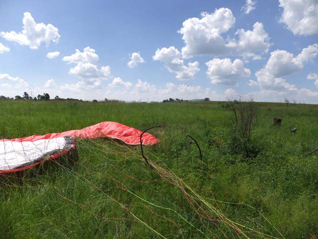 My landing spot, Soya bean plantation and Dumbe in the background |